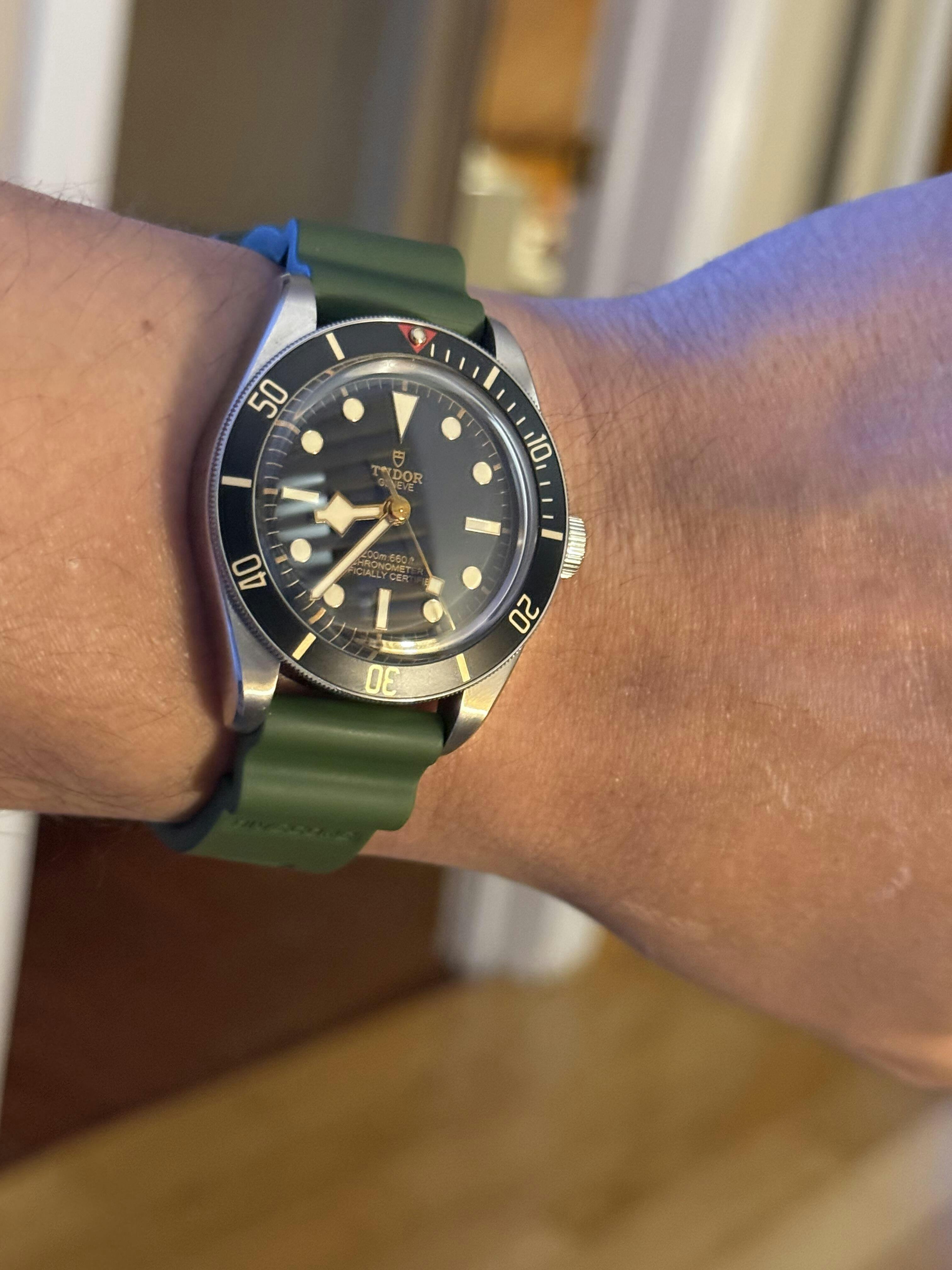 These use Divecore's upgraded American FKM rubber formula. The scientific name of FKM is Fluoro-Elastomer. It is an extremely hard-wearing rubber compound highly resistant to salt water, aggressive chemicals, and extreme temperatures (as low as -45C and high as +300C). It is the perfect choice for a high-end rubber watch strap designed to fit the toughest watches and withstand the harshest environments.